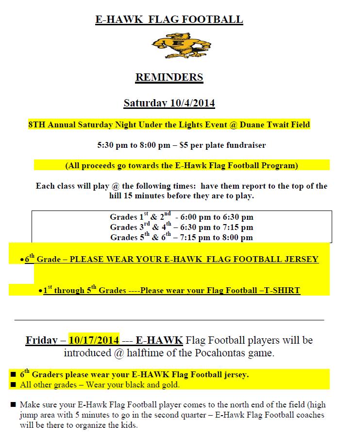 September 14, 2015 Emmetsburg To Hold 8th Annual Under The Lights Event For Flag Football September 14, 2015